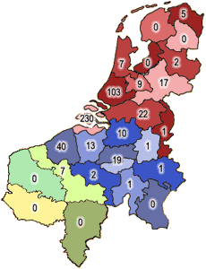 Met de komst van de elektronische telefoongidsen op het Internet is een onderzoek naar telefoongegevens veel eenvoudiger geworden. Voor mijn onderzoek heb ik de gegevens voor heel Nederland en België en van de vier noordelijke departementen in Frankrijk op een rijtje gezet (Nord, Pas-de-Calais, Somme en Aisne). Onderstaand de getallen uit het oorspronkelijke onderzoek naast de gegevens uit februari 2003.
