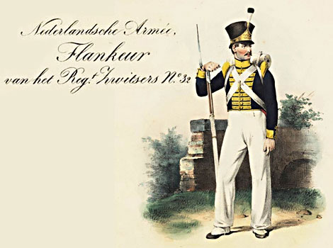 Het zomer uniform van de flankeurs van het regiment Zwitsers nr. 32