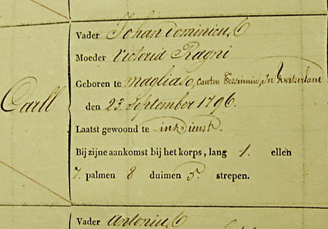 Het was nog altijd een raadsel hoe, waarom en wanneer onze Italiaanse voorouder Carlo Pozzi nou precies in Nederland terecht was gekomen. We wisten uit de overlevering en de in de familie bewaarde documenten dat hij zowel in Zwitserse als in Nederlandse legerdienst was geweest. Zijn vrouw kwam uit Brussel en kinderen zijn daar én in Doesburg geboren. Maar hoe hij daar nou allemaal precies terecht gekomen was bleef erg lang onduidelijk.