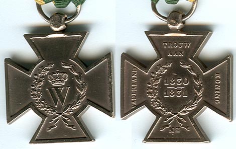 Voor- en achterzijde van het Metalen Kruis de onderscheiding voor deelname aan de krijgsverrichtingen vanwege de afscheiding van België